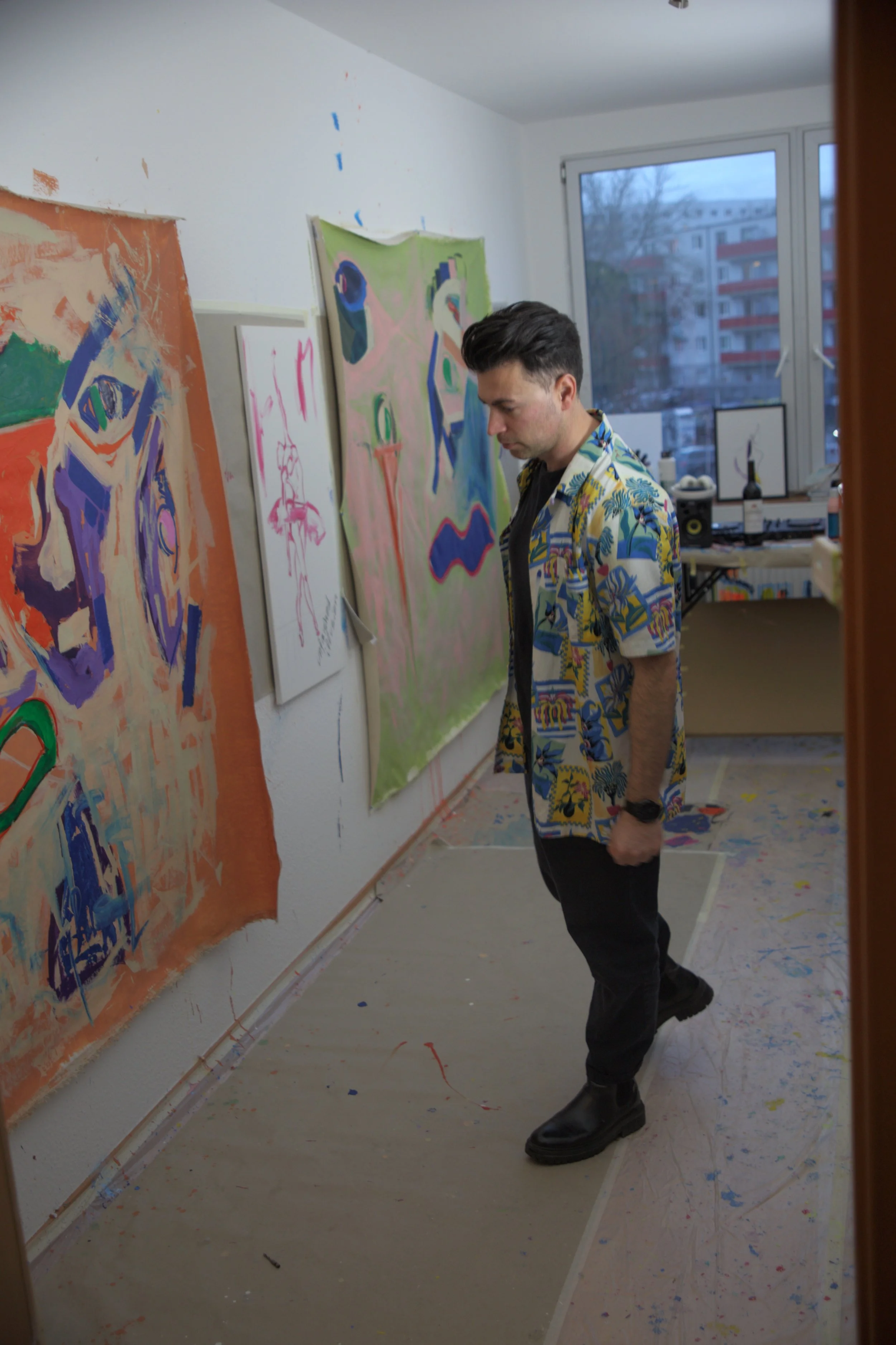 Seine künstlerische Reise begann mit Kunstunterricht in Belgien; heute ist er in Berlin künstlerisch aktiv.